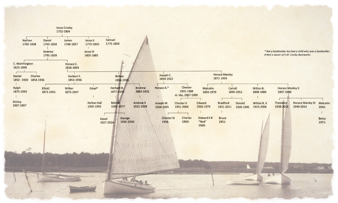Eight Generations of Crosbys have built boats for over 270 years, from 1744 to present.