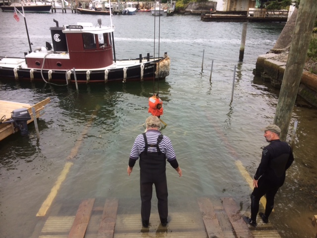 If you’ve driven over the drawbridge lately, perhaps you’ve noticed the construction equipment in the area. We actually built the ramp ourselves…having purchased and refurbished some older excavation equipment, obtaining 38 pre-cast concrete slabs, and with a whole lot of Yankee ingenuity…the result is stunning! Also, the “Reynolds” property behind the ramp and adjacent to the “little shop,” also has been purchased by EM Crosby. We successfully changed the zoning from residential to marine commercial, and now will have that area as a “staging” location for the summer of 2019 and beyond. It is also our goal to put a boatbuilding shop on the property…we’d like for people to be able to “see what we can do.”