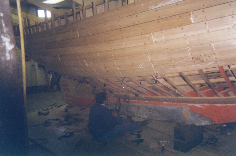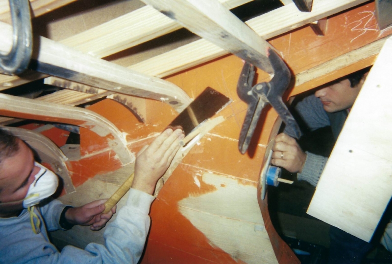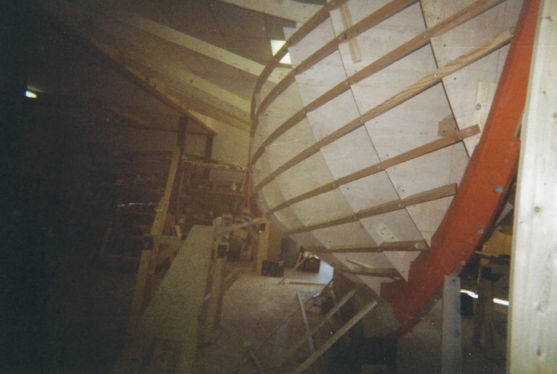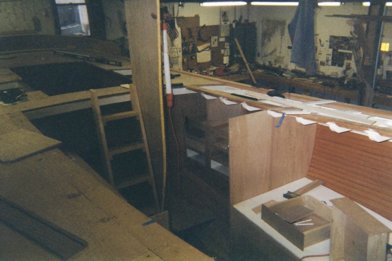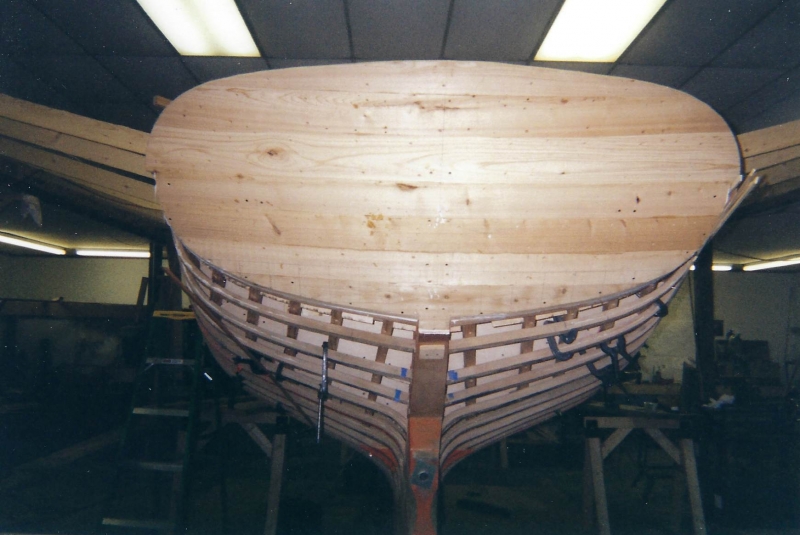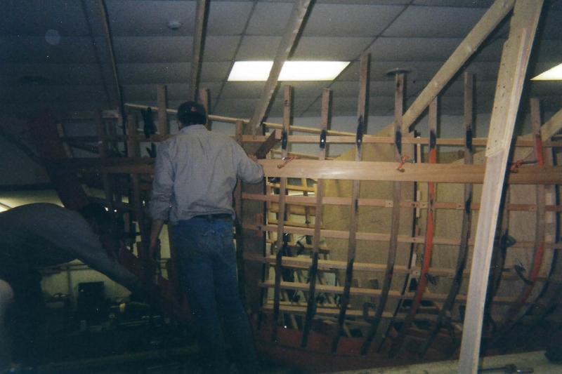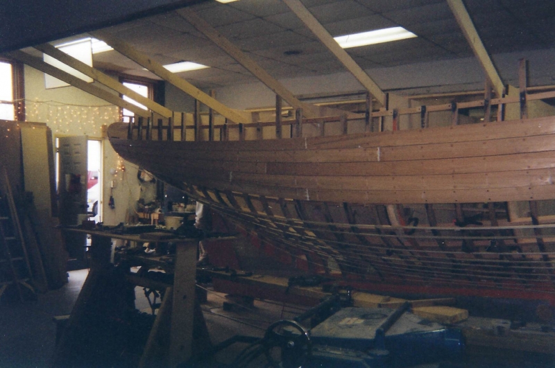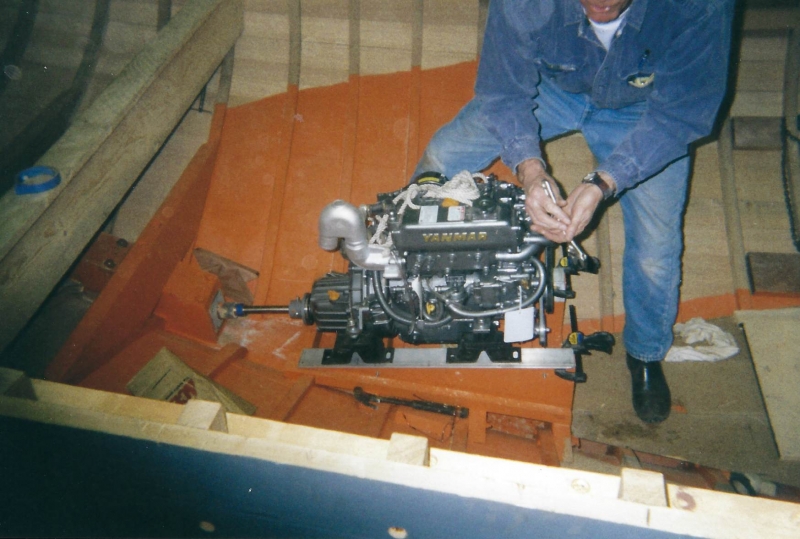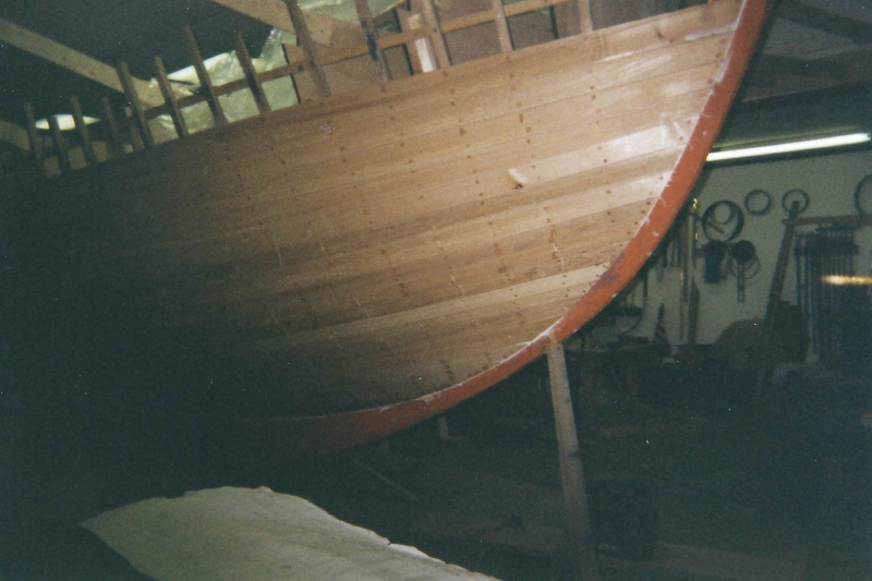 Using plans adapted by naval architect Bill Peterson to accommodate a cutter rig, Ned and the late Teddy Crosby, who had recently “retired” from the Crosby Yacht Yard, built Katy from the ground up: Her keel was one 24-foot-long piece of oak, which the builder, Ned, wet down and bent on the grass behind the shop, then bolted to a 4,400 lb. lead ballast keel. Ned went more high tech with lofting the boat; Edmonds Design used a CNC machine to create and produce the station molds. The owner travelled to Maine to order a 6’ cabin house from a friend who was a woodworker and boatbuilder, and to Vermont for a hollow fir mast from a spar maker. During this time, Crosby’s crew added ribbands, steam bent white oak for frames, and then completed the planking in one month’s time. South African mahogany coamings were added, the hull painted, the caprails varnished and Katy was ready for her launch party. Then the owner accomplished his second dream – to sail Katy to Bermuda before his 70th birthday. Katy now lies at anchor in Cotuit, MA.