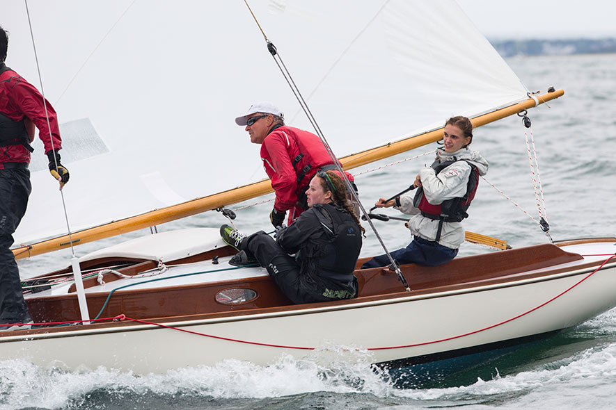 H. Manley Crosby, designer and builder of the Wianno Senior, once said, “There’s nothing like a good boat to make a man feel young again.” The Wianno Senior is that boat. Commissioned by the Wianno Yacht Club, whose members sought a “fast, able, good-looking, unsinkable” racing yacht, the Senior was designed as a unifying vessel for competition on Nantucket Sound. In 1913, 13 racing families in Osterville approached H. Manley and requested a one-design boat that would reveal a skipper’s knowledge of the area’s wind shifts, currents, and shoals. They desired a sensitive craft that would demonstrate the helmsman’s touch for “porpoising the waves,” as Chet Crosby, paid skipper and 6th generation Crosby boatbuilder recalled. Once launched, the Wianno Senior proved to not only level the playing field among skippers, but also was instrumental in training young sailors – both male and female – to compete regionally, nationally and internationally.