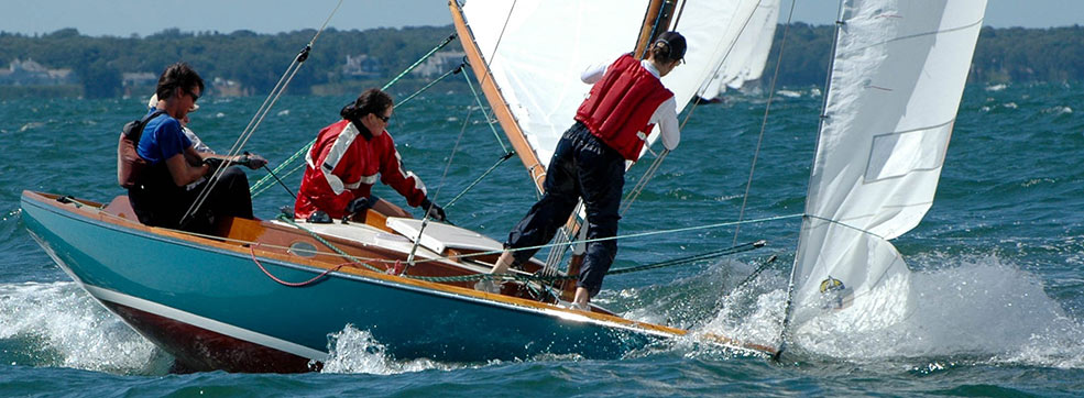 In today’s racing fleet, the owner of a Wianno Senior generally handles the tiller, makes decisions about maintenance, and plots the right course to win. In the early days of U.S. yacht racing, a professional skipper was hired to play most of these roles. Despite a shift in the late 1800s to owners sailing and managing their own boats, half the Wianno fleet historically preferred to hire professional skippers. From 1914 through the 1930s, a Senior owner would pay for someone to tune and maintain their boats as well as coach and advise the helmsman and his or her children. The professionals were mostly local men, including Crosby boatbuilders, who knew the area’s wind shifts, tidal currents, shoals and sand bars. For the most part, these men did not take the tiller during the races; instead they counselled and directed the Senior owner on when to tack, jibe, set the spinnaker, and pull up the centerboard. For those without a professional skipper, the fleet included both “Professional” and “Amateur” divisions.